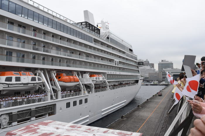 郵船クルーズの新造船 飛鳥Ⅲが, ドイツからシンガホールを経由して2025年6月2日8時に横浜・大さん橋に着岸しました。 横浜市消防艇の放水,港中学校・吹奏楽部の演奏,大勢の出迎え人が,初来航を迎えました。 飛鳥Ⅲは,郵船クルーズの34年ぶりの新造船としてドイツ・マイヤー・ヴェルフト造船所で建造されました。 6月2日~30日まで大さん橋に停泊したのち 7月20日出港の横浜発着7日間クルーズ(横浜→函館→小樽→横浜)に就航が予定されています。 飛鳥Ⅲは,飛鳥Ⅱ 50142総トン・全長241mとほぼ同規模の52200総トン・230mですが, 客室全室がバルコニー付きになり,旅客定員は飛鳥Ⅱの872名に対して,740名になっています。 |