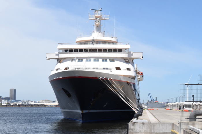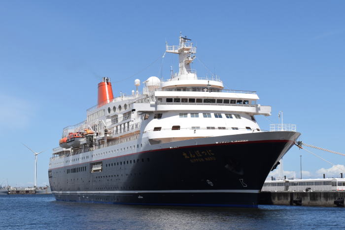“にっぽん丸”は商船三井客船が運航する外航クルーズ客船です。 1990年/平成2年,三菱重工・神戸造船所で,3代目“にっぽん丸”として建造されました。 “にっぽん丸”は,白い船体に赤いファンネルのデザインで就航しましたが, 2010年/平成22年に大改装され,現在の黒と白の船体に,赤いファンネルになりました。 |