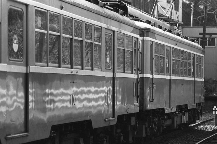 | 大平台駅に停車する強羅発小田原行/普通 104+110 1978.4.7 大平台〔箱根登山鉄道〕 | ||