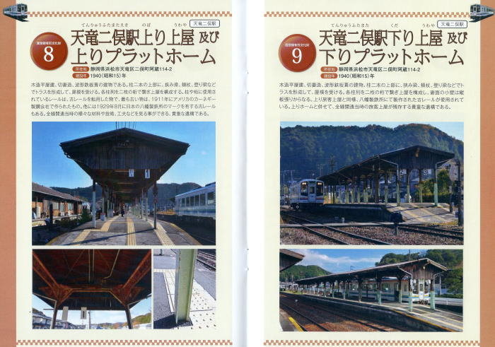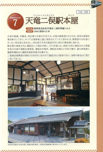 天竜二俣駅の登録有形文化財指定の 鉄道遺産は 遠江二俣駅(現 天竜二俣駅)開業時 1940年/昭和15年に建設された ①駅本屋,②ホームと上屋です。 2011年に有形文化財に 登録されました。 木造建屋,古レールを活用した ローカル線に観られた 一般的な駅・運転施設ですが, 歴史価値が付加されたことにより 将来に継続されるでしょう。 |