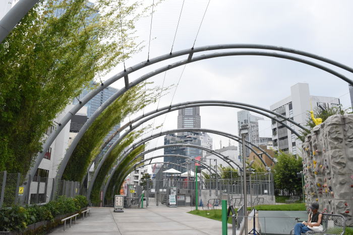 | ツインアーチ構造の天蓋のある宮下公園・南側広場 2025.8.22 宮下公園 |