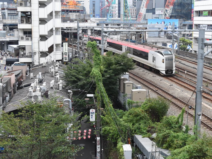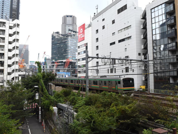 | 渋谷・宮下公園南空 ◆JR東日本・渋谷駅の北側に位置する宮下公園から 山手線,埼京線/湘南新宿ラインを走る列車を 俯瞰撮影しました。 宮下公園は商業施設 MIYASHITA PARK の 屋上(4階)にある空中庭園です。 西側方向にJR複々線が隣接して走っており 施設の南側からは渋谷駅を発着する列車が撮影できます。 |