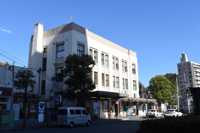| 1924年/大正13年建築の鉄筋コンクリート造3階建ての青梅駅舎 | ||