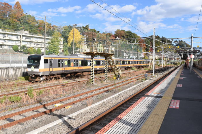 | 2番線で発車を待つ立川行普通E233系 | ||