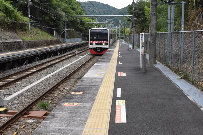 | 下りホームに到着する8000系/伊豆急下田行普通 | ||