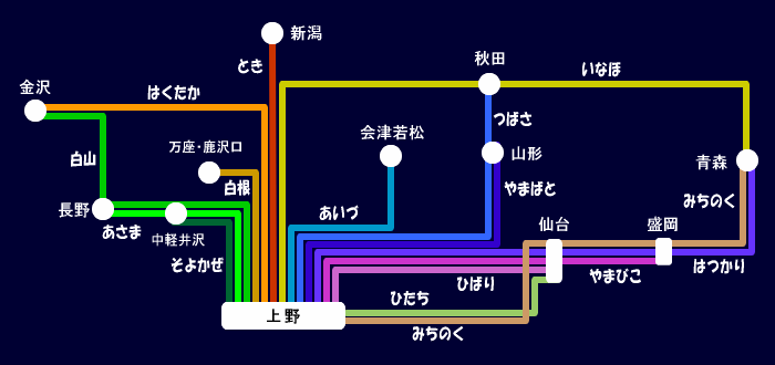 | 東北 | はつかり やまびこ ひばり つばさ やまばと あいづ |