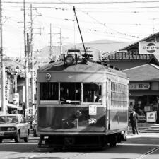 | 嵐電は,1975年/昭和50年まで トロリーポール集電でした。 京福電鉄/叡山線・鞍馬線も, 1978年/昭和52年まで トロリーポール集電でしたが, スライダー式でした。 くるくる回るホイール式の トロリーポール集電は, 嵐電が最期になりました。 |