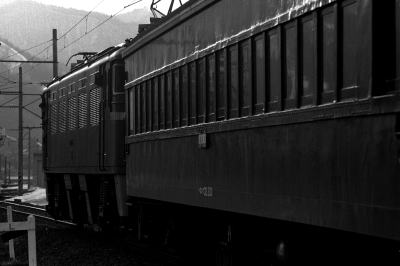 | ●ED77牽引の普通列車は,そのまま側線に入線しました。 | |