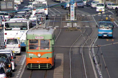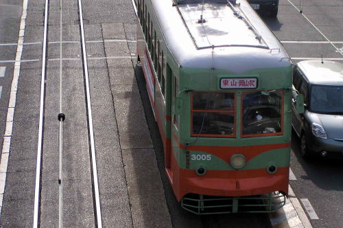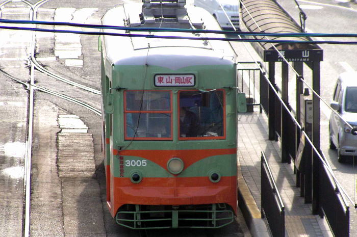 撮影/2007.4.20 東山 3000形は, 昭和60年代初頭まで 岡電の主力電車として 活躍しました。 しかし,冷房電車の投入により 冷房のない3000形は 廃車になり 現在,3輌が残っています。 |