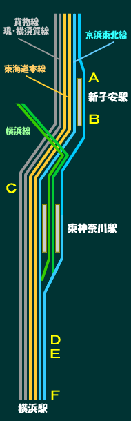 | 新子安駅ホームから鶴見方向 | 新子安駅ホームから東神奈川方向 | |||