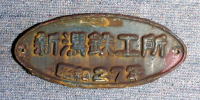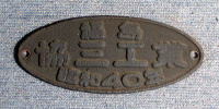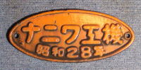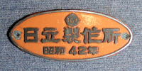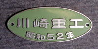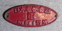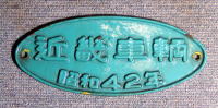 | 電車,客車,貨車の妻板の下部に,横26cm×縦11cmの楕円製造銘板が取り付けられています。 楕円製造銘板の多くは鋳鉄製で車体色が塗装されていますので,カラフルなコレクションができます。 楕円製造銘板を入手したとき、塗装色,メーカ,製造年から車輌を特定することができます。 |