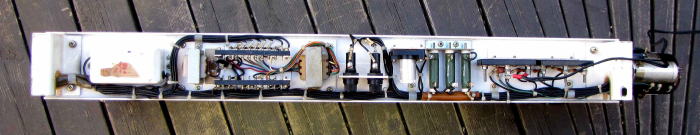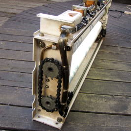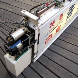 | 列車毎の種別・愛称名・行先を表示したフィルム幕を, モータで,巻き上げる構造になっています。 蛍光灯 1灯で,裏面から照明しています。 方向幕は,34種類の列車表示が用意されています。 びわこライナー,リゾート信越が含まれていますので, 金沢運転区の所属車に装備され, 2000年/平成14年頃に使用されたものと推察します。 長さ 850mm 高さ 300mm 幅 90mm 方向幕の幅 680mm |