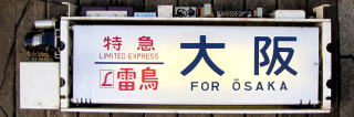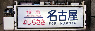 | 電車,客車は,行き先を示すため,車体側面に行先板を付けていましたが, 電動式行先表示機が普及し,行先板(サボ;サイドボード,サインボード)は見なくなりました。 特急列車が終着駅に到着すると,行先表示機の方向幕がくるくる回り,回送表示になって発車していきます。 最近は,LED式行先表示機が一般化しており,そのうちに,電動式行先表示機も消えることでしょう。 |
