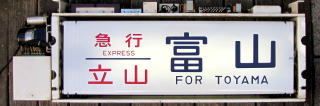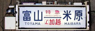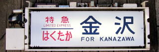 | 北陸を走る特急車の行先表示機は, 雷鳥,しらさぎ,白鳥,加越,北越など 多彩な列車の方向幕を装備していました。 |