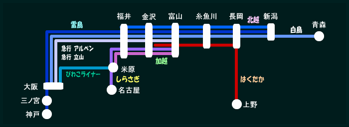 回送 試運転 臨時 L特急 雷鳥 富山−大阪 L特急 しらさぎ 名古屋 L特急 しらさぎ 富山 L特急 雷鳥 金沢−大阪 特急 北越 新潟−大阪 特急 白鳥 大阪 特急 白鳥 青森 急行 アルペン 大阪 急行 アルペン 富山 特急 はくたか 上野 特急 はくたか 金沢 特急 北越 新潟 特急 北越 福井 びわこライナー 米原−大阪 リゾート信越 L特急 雷鳥 長岡 急行 立山 大阪 急行 立山 富山 特急 北越 新潟−金沢 快速 糸魚川−富山 L特急 加越 金沢−米原 L特急 加越 富山−米原 L特急 雷鳥 大阪 L特急 雷鳥 新潟 L特急 雷鳥 金沢 L特急 雷鳥 三ノ宮 L特急 雷鳥 富山 L特急 雷鳥 神戸 |