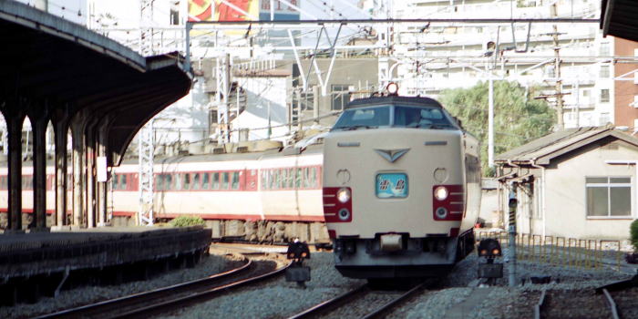 | 撮影/1990.9.8 大阪 【雷鳥 大阪−金沢・富山・新潟】 485系ボンネット車は2003年,雷鳥定期列車から引退 |