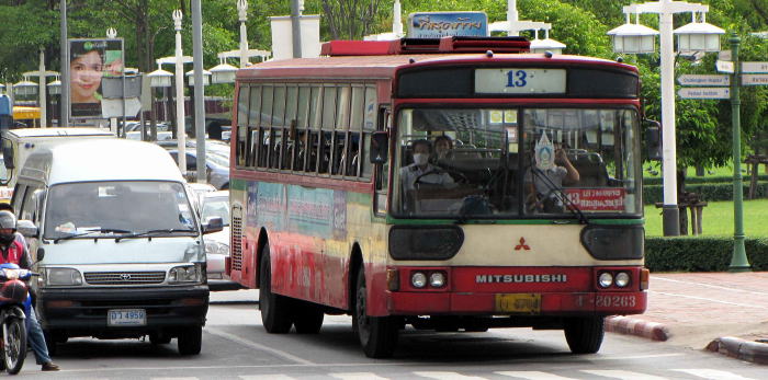 赤バスには,緑色ラインのBMTA直営バスと,黄色ラインの民間委託バスがあるそうですが,