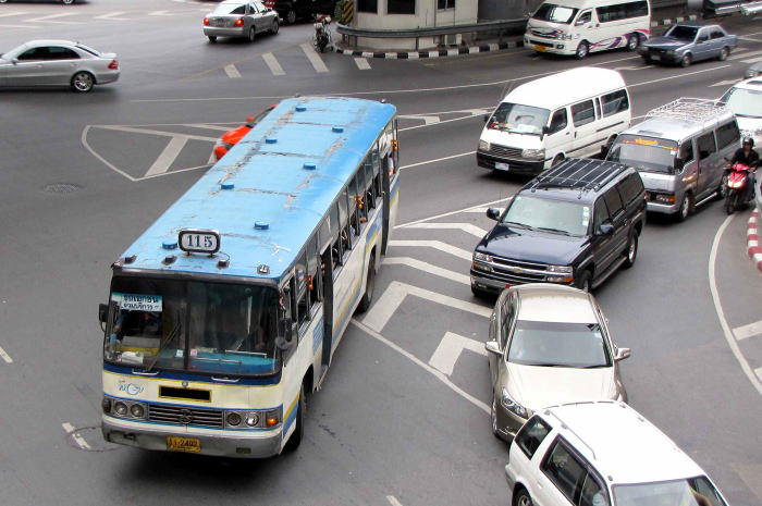 白バスには,緑色ラインのBMTA直営バスと,黄色ラインの民間委託バスがあるそうですが,