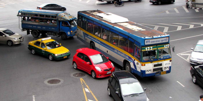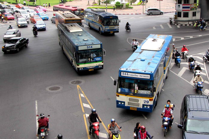 赤バス,白バスと違い,緑色ラインのBMTA直営バスと,黄色ラインの民間委託バスを見ることができました。