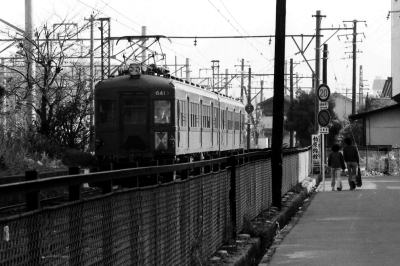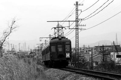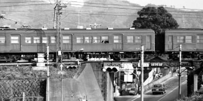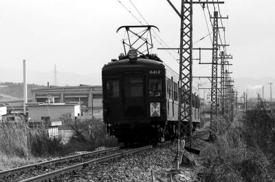 ●6411系電車 南大阪線に,戦後初の新製車として, 6411系電車;モ6801形 4輌・ク6701形 2輌が, 1949年/昭和24年に製造されました。 当時の近鉄最長 20.9mの両運転台・大型車であり, 大阪線の旧1400形に類似のスタイルの電車でした。 1957年/昭和32年,6800系(ラビットカー)登場のとき, モ6411形,ク6521形に改番されました。 モ6411形 6411,6412,6413,6414 ク6521形 6521,6522 南大阪線から名古屋線に転属したこともありましたが, 長年,南大阪線で活躍しました。 1966年/昭和41年に, モ6411とモ6114は,荷物電車として運用を始め, その後に,電動貨車モワ26,27に改番されました。 残りの4輌は,片運転台車に改造され, モ6412−ク6521,モ6413−ク6522の2輌・2編成が, 道明寺線,御所線に運用されました。 1983年/昭和58年に全車廃車になりました。 |