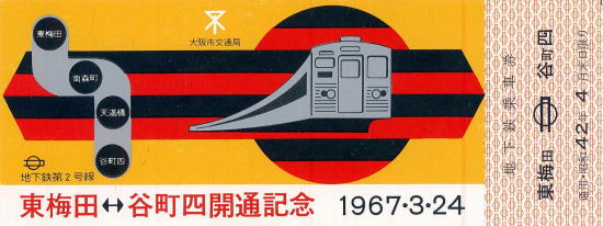 1967.3.24 2号線開通 (谷町線) 東梅田−谷町四 |