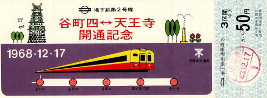 1968.12.17 2号線開通 (谷町線) 谷町四−天王寺 |