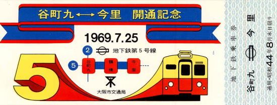 1969.7.25 5号線開通 (千日前線) 谷町九−今里 |