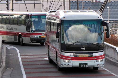 京浜急行バスは, 多数のバス会社と共同運行して, 関東各地からリムジンバスを運行しています。 羽田空港では, オレンジの東京空港交通バスとともに, 赤の京浜急行バスを多く見ることができます。 京浜急行バスの代表路線である横浜線は, 1968年/昭和43年に開設された路線であり, YCAT(横浜駅東口)−羽田空港を 30分以内で結びます。 |