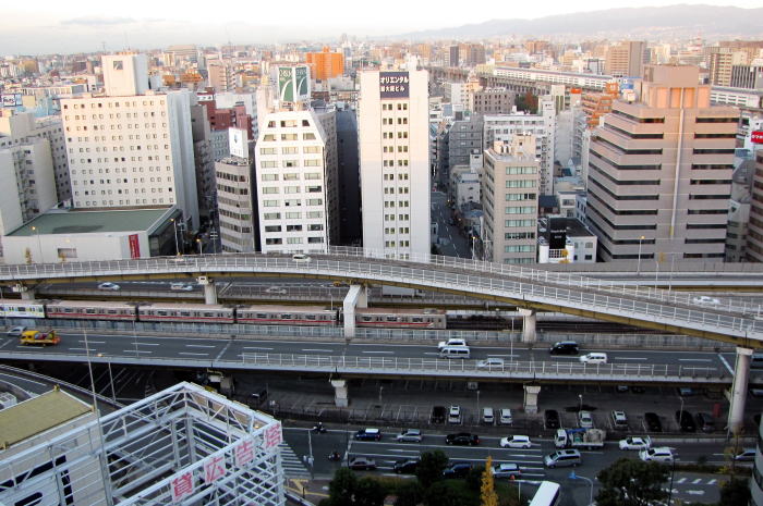 | 新大阪上空 ◆新大阪駅に近い新大阪ワシントンホテルプラザ客室から 俯瞰撮影しました。 ホテルの周りには,大阪市営地下鉄・御堂筋線や JR東海道線,阪急京都線などが走っています。 西向きの客室(16階1605号室)からは, 北西方向に,六甲山を背景に新幹線列車が見え, 南西方向には,阪急電鉄淀川鉄橋が見えました。 朝の僅か1時間(7〜8時)でしたが, 新大阪を発着する新幹線列車,大阪地下鉄,阪急電車を 撮影できました。 朝日を浴びて出発する新幹線列車が印象でした。 |