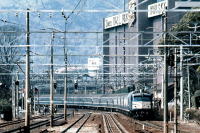 東海道本線・山崎駅付近は, 複々線が大きくカーブするため, 昔から,列車撮影ポイントとして有名でした。 山陽新幹線・博多開業後の1975年/昭和50年は, 昼行山陽特急が3月に廃止になりましたが, EF58列車や北陸特急,153系新快速が注目でした。 |