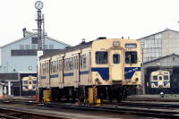 相模線(茅ヶ崎-橋本)を走るディーゼルカーです。 1989年/平成元年の茅ヶ崎運転区の公開日の撮影です。 当時の相模線には,クリームと青の独自カラーの キハ30・35形ディーゼルカーが運用されていました。 2年後の1991年/平成3年に電化が完成し, 現在の205系500番台電車に置換わりました。 |