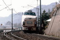 1975年/昭和50年の山陽新幹線・岡山-博多開業で, しおじ,はと,つばめ,かもめ,みどり など 全ての昼行特急が,廃止になりました。 国鉄特急時代の象徴 485系ボンネット車が, 颯爽と活躍していました。 最期の山陽特急を山陽本線・大畠-神代で撮影しました。 |