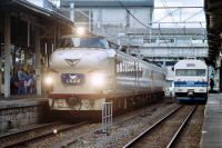 1995年10月,小田原から金沢に向かう途中, 米原,金沢駅で北陸を走る列車を撮影しました。 米原駅では,特急“しらさぎ”の増結作業, 581・583系の近郊形改造車419系タウントレイン, 金沢駅では,419系,475系,489系能登, 七尾線113系改造車415系などを撮影しました。 |