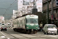 1990年11月,阪堺電軌・上町線・松虫駅付近で, 頻繁にやってくる路面電車を撮影。 当時は,旧型路面電車121形・161形・301形が主力。 現在,161形・4輌が現役として運用中。 松虫は,道路併用軌道と専用軌道の切替駅。 落着いた松虫駅に,旧型電車が似合っていました。 |