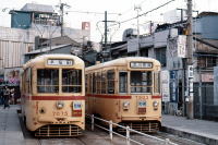 阪堺電車は,大阪に残る唯一の路面電車です。 1974年/昭和49年頃,阪堺線の電車は, 緑色とクリーム色の金太郎塗色でした。 当時は,平野線(今池-平野)が営業していましたが, 大阪地下鉄・谷町線の延伸により廃止になりました。 |