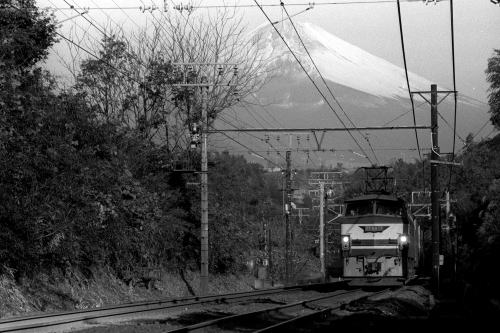 | 大動脈である東海道本線には,貨物列車が頻繁に運転されています。 1983年/昭和58年当時,直流機関車EF60,EF65,EF66が貨物列車を牽引していました。 1934年/昭和9年に丹那トンネル(熱海-函南)が開通するまで, 東海道線は,現在の御殿場線(国府津-沼津)を経由していました。 この区間は,急な勾配のため,全列車に補助機関車を連結しなければならず,ネックになっていました。 丹那トンネルは,全長7804mの長トンネルのため,当初から電化され,旅客・貨物列車ともに電気機関車が牽引しました。 |
