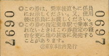 銀河・東京→・2等・B上段・1680円 昭和35年7月9日・(交)東京本社内発行 |