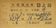 | 能登・福井→東京・1等・B上段・1540円 昭和40年3月23日・福井駅発行 |