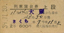 さくら・大阪→・2等・上段・600円 昭和39年11月20日・(交)大阪梅田発行 |