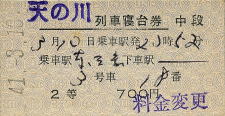 天の川・東三条→・2等・中段・700円 昭和41年3月10日・東三条駅発行 |