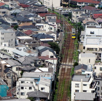 | 東京 世田谷上空 ◆三軒茶屋のキャロット・タワー26階の展望ロビーから, 東急 世田谷線(三軒茶屋-下高井戸)を走る電車を 撮影しました。 キュロット・タワーは, 1996年/平成8年に完成したオフィスビルです。 外壁が,にんじん(キャロット)色に見えたことから キュロット・タワーと名づけられました。 最上階の26階には, 展望ロビー(無料,9時30分〜23時営業)があります。 展望ロビーからは,三軒茶屋-西太子堂-若林を 走る電車を撮影できます。 世田谷線には, 編成毎に異なるパステルカラーに塗装の電車が, 頻繁に運転されています。 世田谷線の所要時間は片道17分です。 1時間の撮影で, 運用されている全ての電車を撮影できます。 |