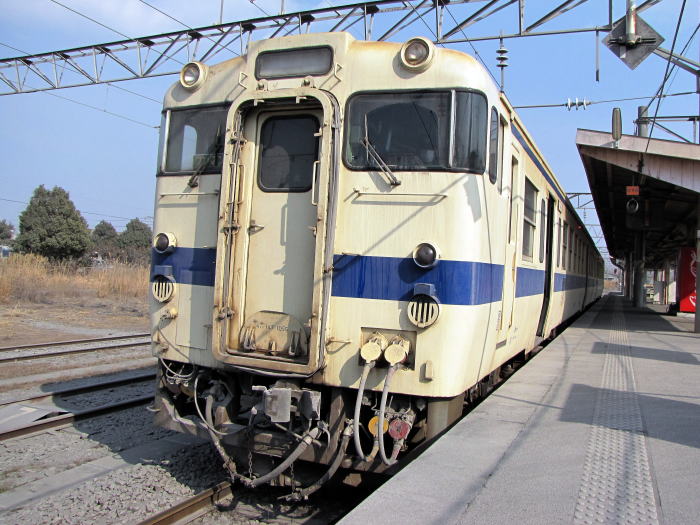 都城駅には,灰まみれの2両編成のディーゼルカーが,僅かなお客を乗せて,出発時刻を待っていました。