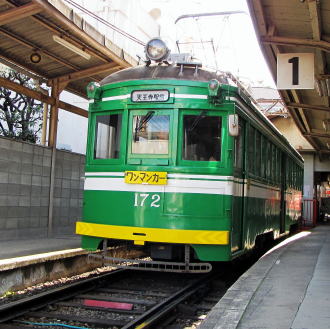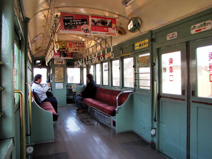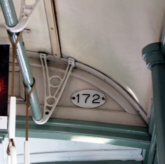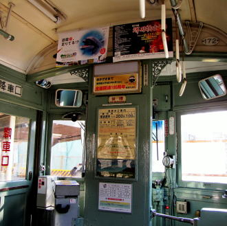172(161形)は,1931年/昭和6年に 田中車輌(現 近畿車輌)で製造されました。 *車内銘板は昭和5年製造です。 161形電車は, 1928〜31年/昭和3〜6年に 16輌が製造されました。 現在,10輌が在籍して頑張っています。 日本における現役最古の電車です。 13mの大型車は,収容力が大きく, 住吉大社の初詣輸送に活躍しています。 冷房装置がないため, 10月〜6月を中心に運用されています。 車内は,モスグリーンの厚塗りペンキに 真鍮製の手摺など 昭和の雰囲気が充満しています。 |