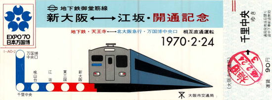 1970.2.24 御堂筋線開通 (1号線) 新大阪−江坂 北大阪急行 江坂 −万国博中央口 |