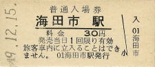 | 海田市 “かいたいち” 30円 〔山陽本線〕 昭和49年12月15日 |