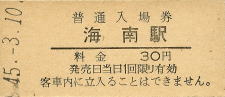 海南 “かいなん” 30円 〔紀勢本線〕 昭和45年3月10日 |
