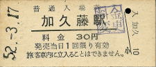 加久藤 “かくとう” 30円 〔吉都線〕 昭和52年3月17日 |