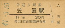 | 笠置 “かさぎ” 30円 〔関西本線〕 昭和47年3月20日 |