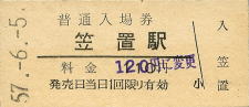 笠置 “かさぎ” 120円 〔関西本線〕 昭和57年6月5日 |
