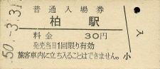 柏 “かしわ” 30円 〔常磐線〕 昭和50年3月31日 |